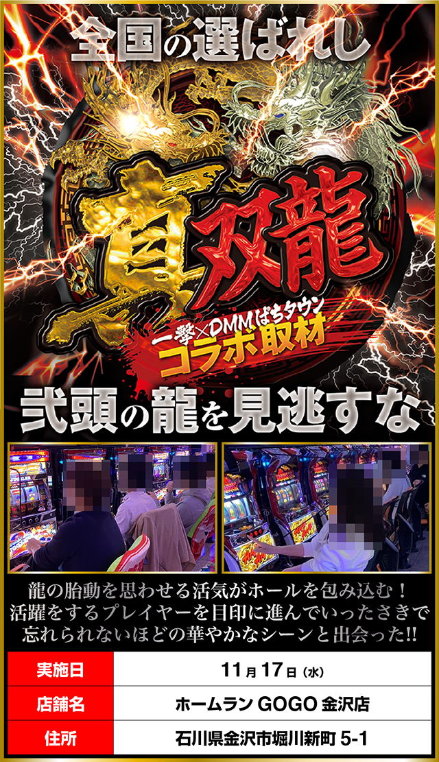 「真双龍」をおこなうべく、11月17日に「ホームランGOGO金沢店」へと足を運んだ。
