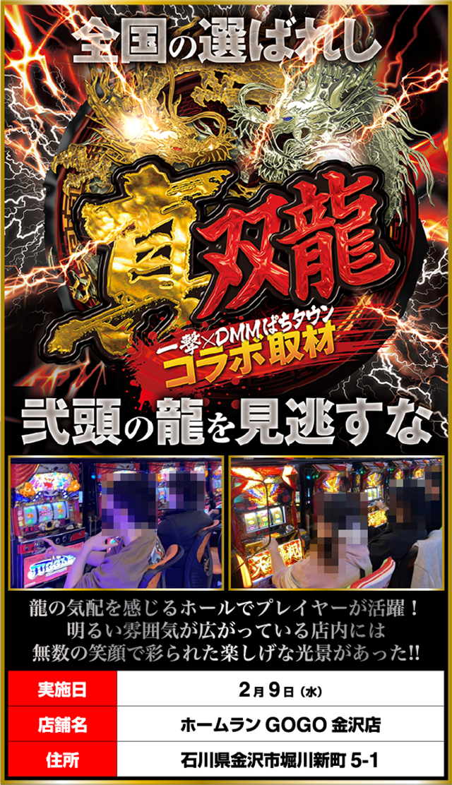 「真双龍」の舞台となったのは、すべての遊技台に各台計数機がついていることも特徴的な「ホームランGOGO金沢店」。