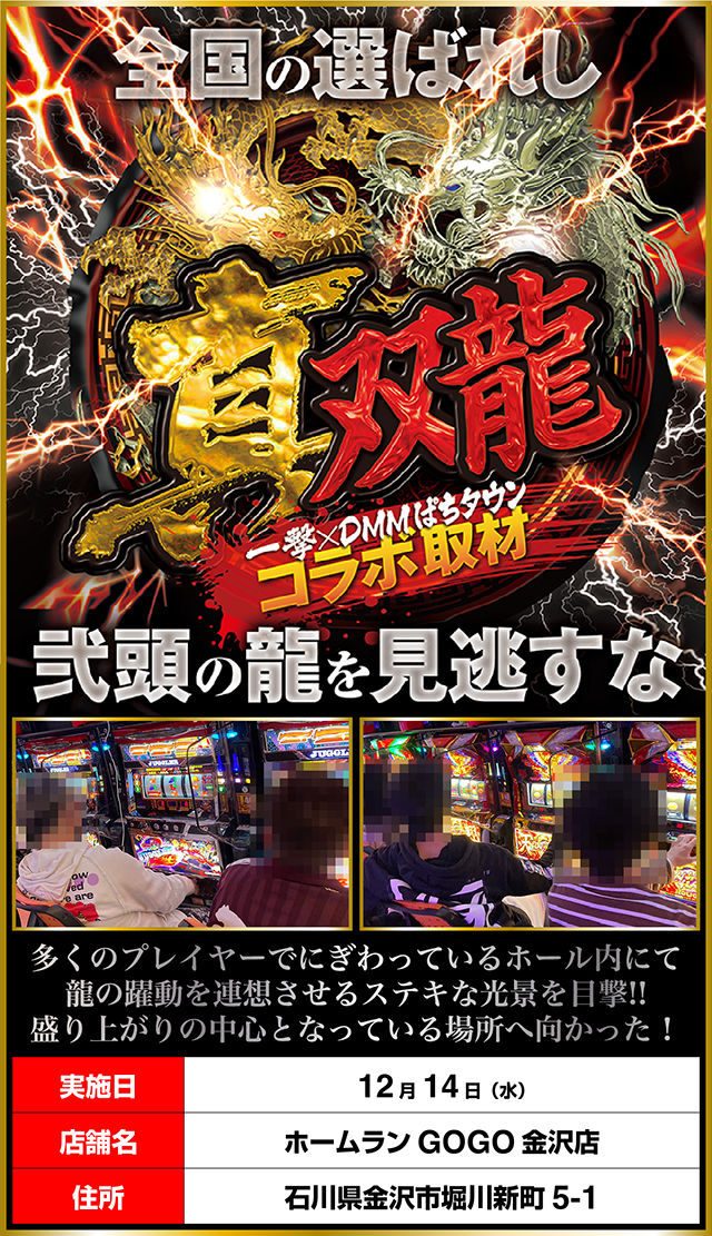 「ホームランGOGO金沢店」を舞台に、弐頭の龍の存在を探る「真双龍」を実施。