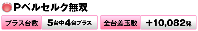 その他、『Pベルセルク無双』も、5台中4台がプラスで全台差玉数も+10,082発と好調だった。