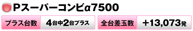 4台中2台がプラスで全台差玉数は+13,073発を記録。