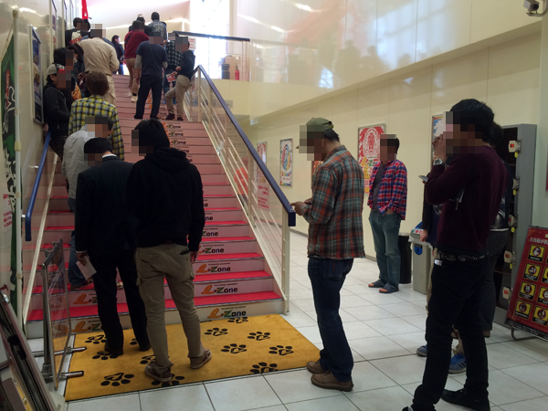朝イチの並びは開店直前に来たプレイヤーを含め約80人。