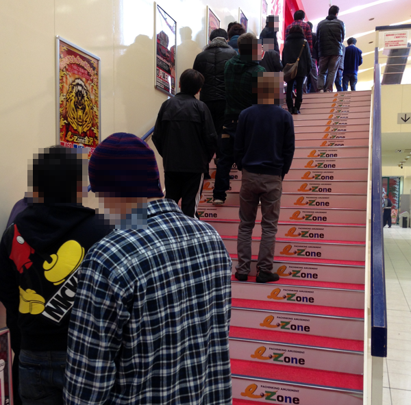 朝イチの並びは開店間際に来たプレイヤーを含め約40名。