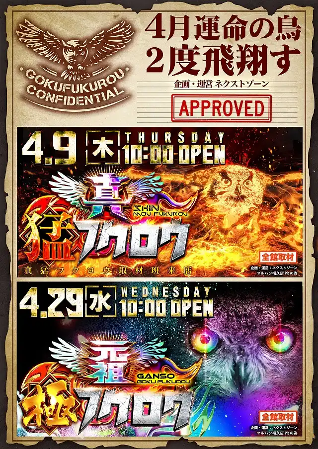 4月1日(土)朝10時開店☆W取材来店☆販売会☆新台入替完了