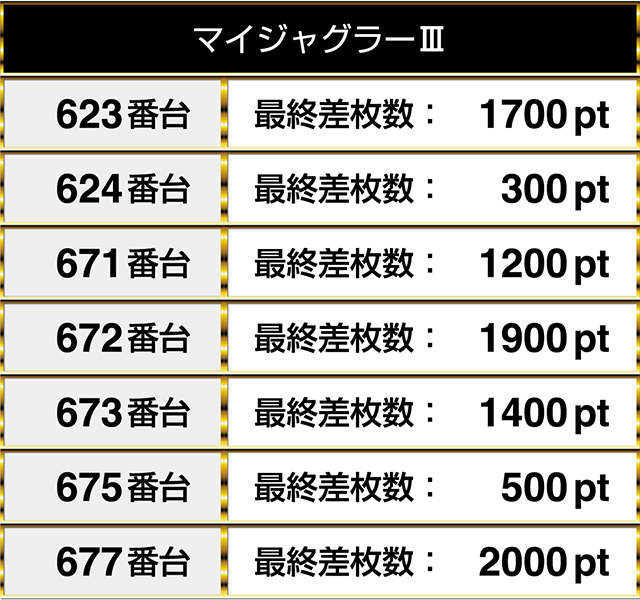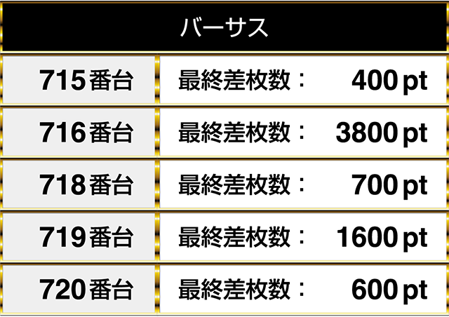 閉店時には設置されている14台のうち、半数となる7台がプラスptとなった。