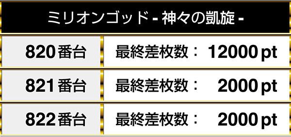 最終的には820番台から822番台までの3台が連なってプラスptを記録!!