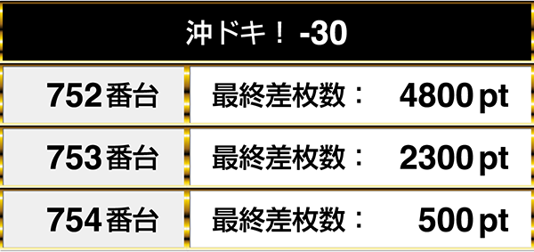 4800ptの台があった『沖ドキ!-30』は3台が並んでプラスptを記録!