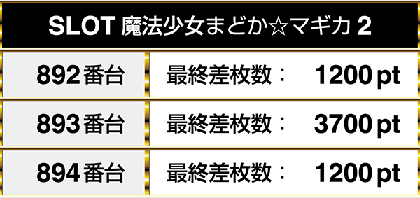 『SLOT魔法少女まどか☆マギカ2』の892番台から894番台までの3台が並んでプラスpt!!