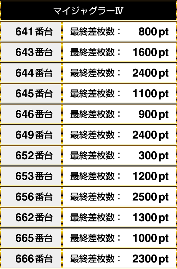 9台が1000pt以上であり、4台は2000ptを上回ってこの日を終えていた。
