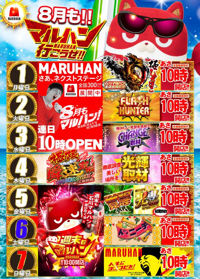 マルハンの8月!!8/2(火)石川マルハン全店10時OPEN