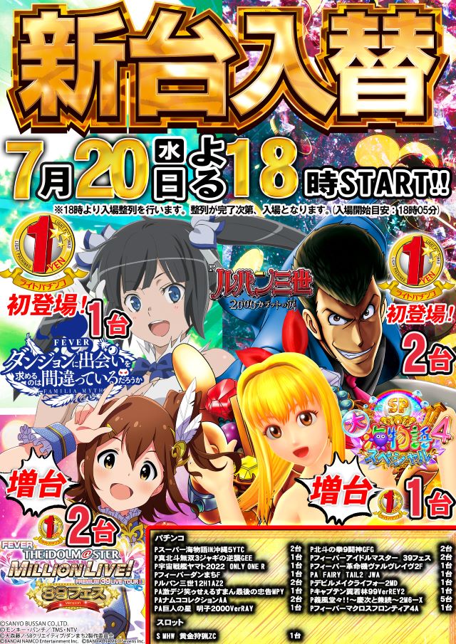 7月24日(日)新台入替完了あさ10時開店 DMM取材班来店
