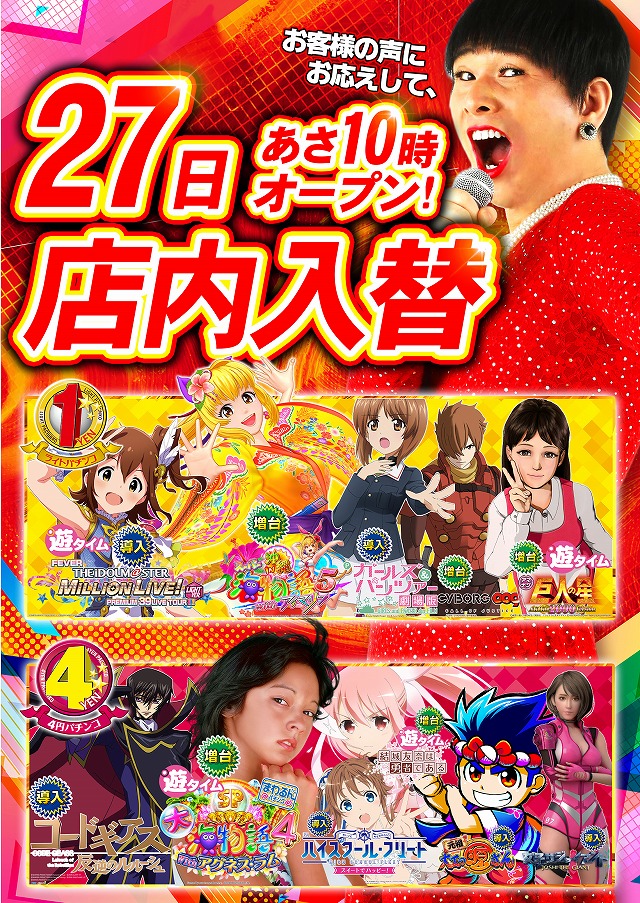 明日27日(水)☆北陸マルハン全店合同営業☆10時開店