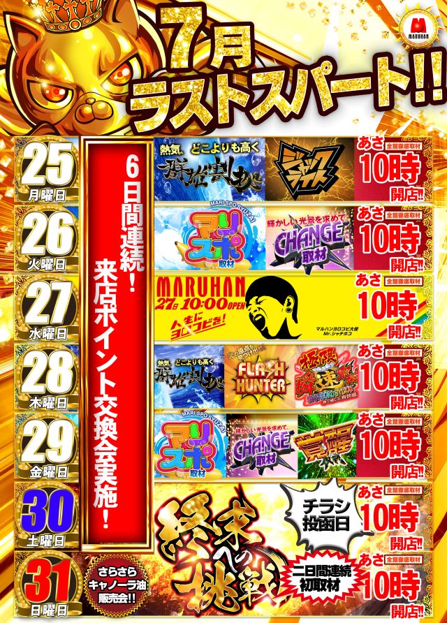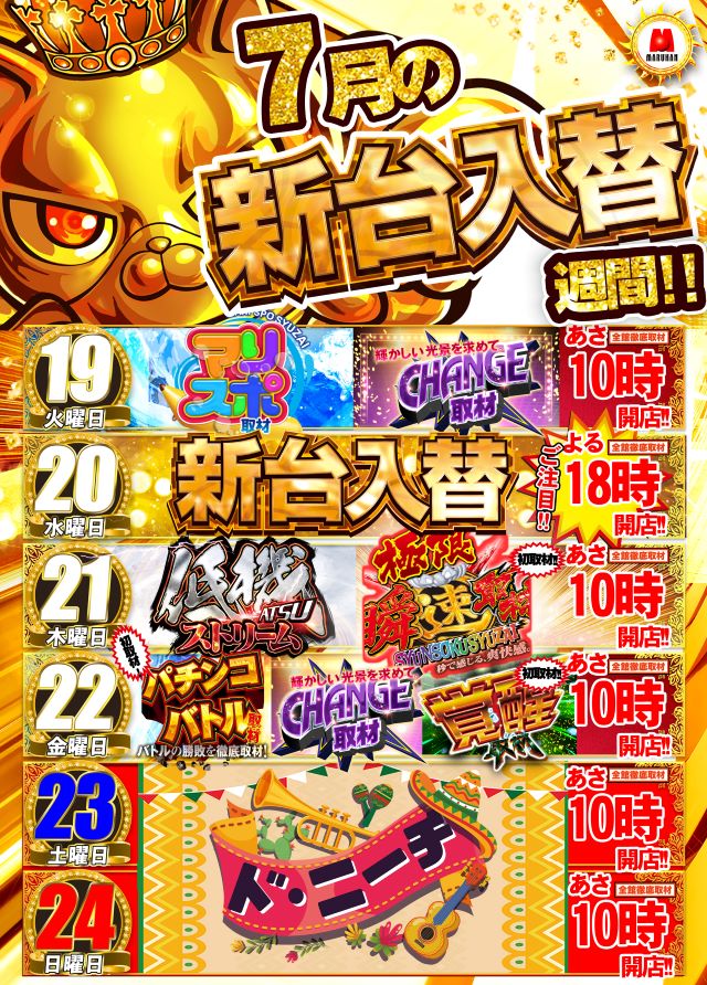 ★19日(火)7月もマルハン★10時オープン!!W取材来店