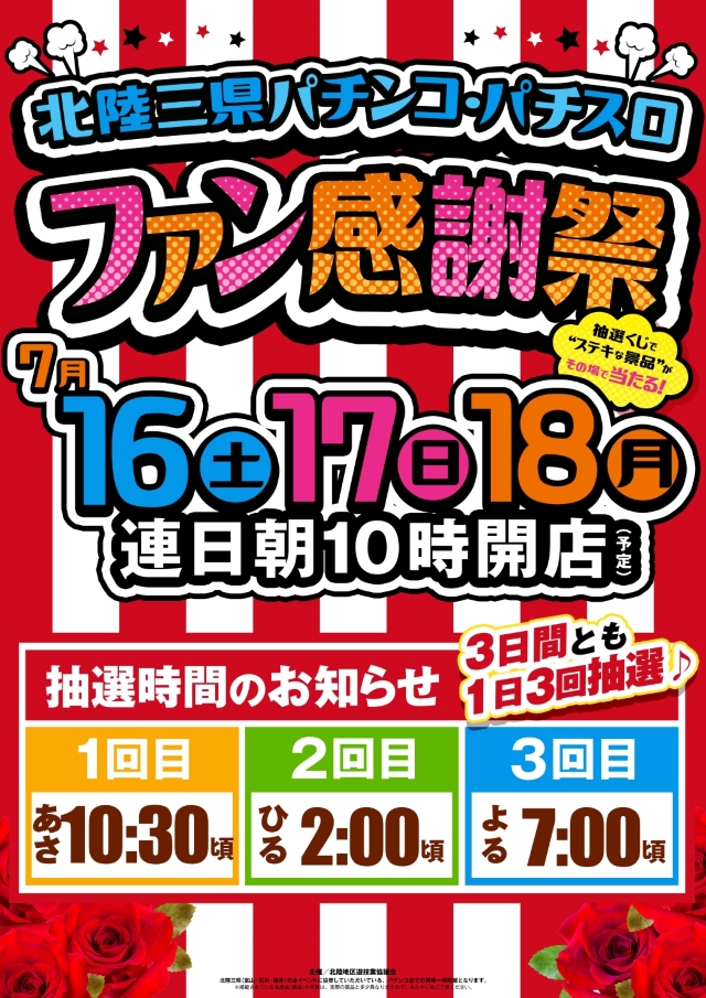 ★18日★北陸三県ファン感謝祭最終日★あさ10時開店★
