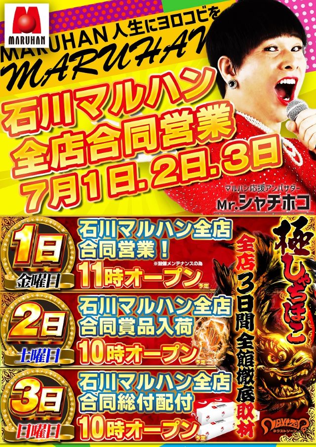 ☆マルハン七尾店あさ11時開店☆
