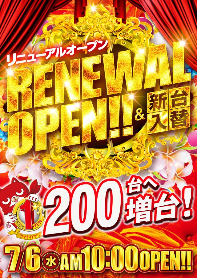 ☆7月6日(水)リニューアルオープン初日☆朝10時開店予定☆