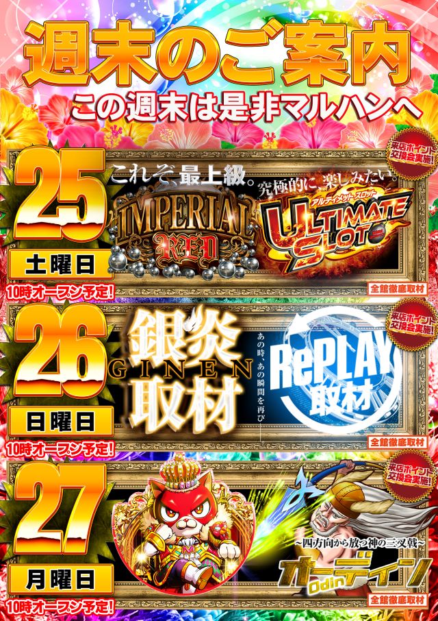☆18日(土)週末もマルハン☆総付景品配布予定☆朝10時開店