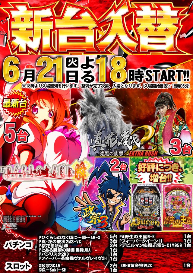21日(火) ☆新台入替初日☆18時START 毎日営業中♬