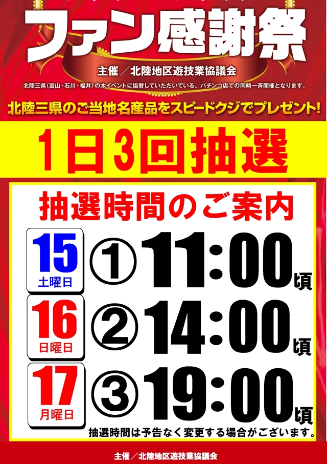 \★マルハン七尾店★北陸三県ファン感謝デー★/