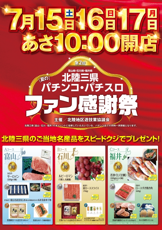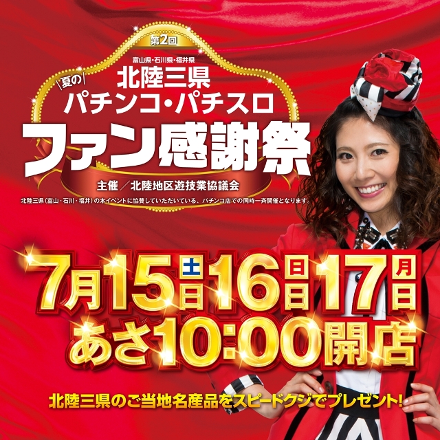 ☆マルハン七尾店☆7/15~17北陸三県ファン感謝デー☆