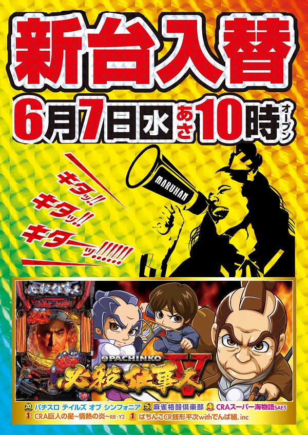 本日6/7(水)☆新台入替☆この後10時オープン!