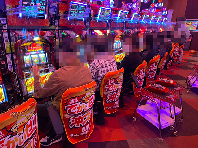 パチスロでは、なのはちゃんも実戦中の沖スロコーナーが大人気♪