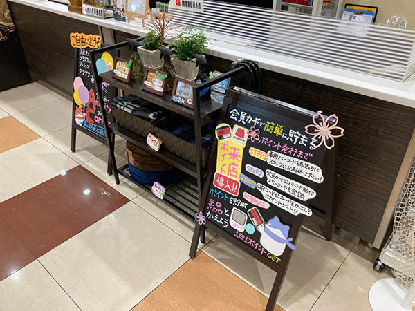 スタッフさんが笑顔で接客をしていたり、会員カードの案内がかわいらしい手書きだったりと、魅力的なポイントが満載!