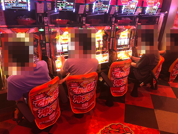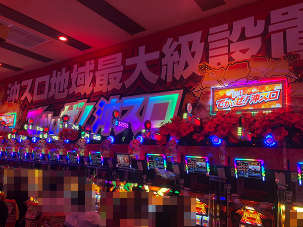 19台設置されている「ツインドラゴンハナハナ‐30」の雰囲気も明るく、プレイヤーたちのイキイキとした表情が、楽しく遊技をおこなえていることを物語っていたように思う。