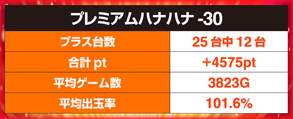 25台中12台がプラスのプレミアムハナハナ‐30!