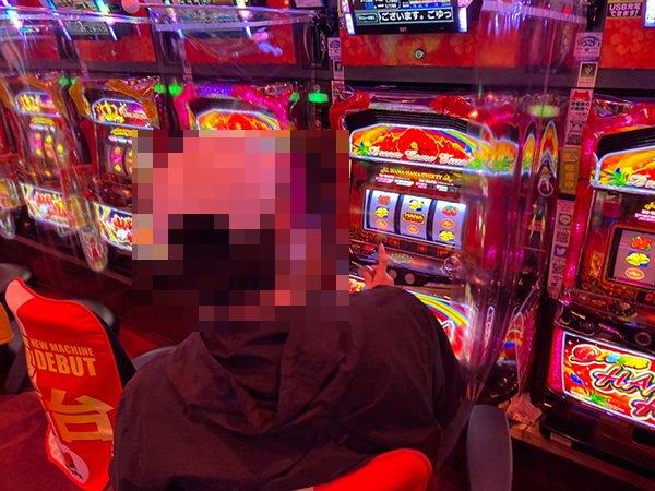 「ツインドラゴンハナハナ‐30」でもプレイヤーの表情は明るく、心から遊技を満喫しているといったイメージ。