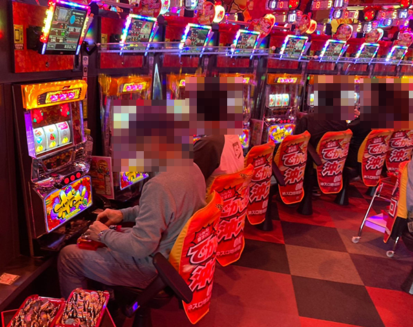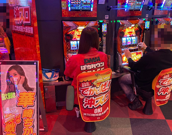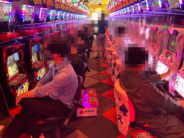 店内の様子をみていくと、パチスロでは沖スロや「押忍!番長3」などなど、多くの機種が盛況♪