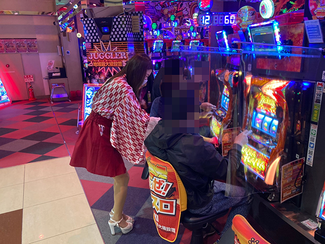 パチスロでは、ちかちゃんも実戦をおこなう「ツインドラゴンハナハナ-30」が大人気。沖スロコーナーはもちろん、ジャグラーシリーズ などの活気も目立っていました♪ 明るい表情で遊技を楽しむお客様も多かったように思います\(^^\)