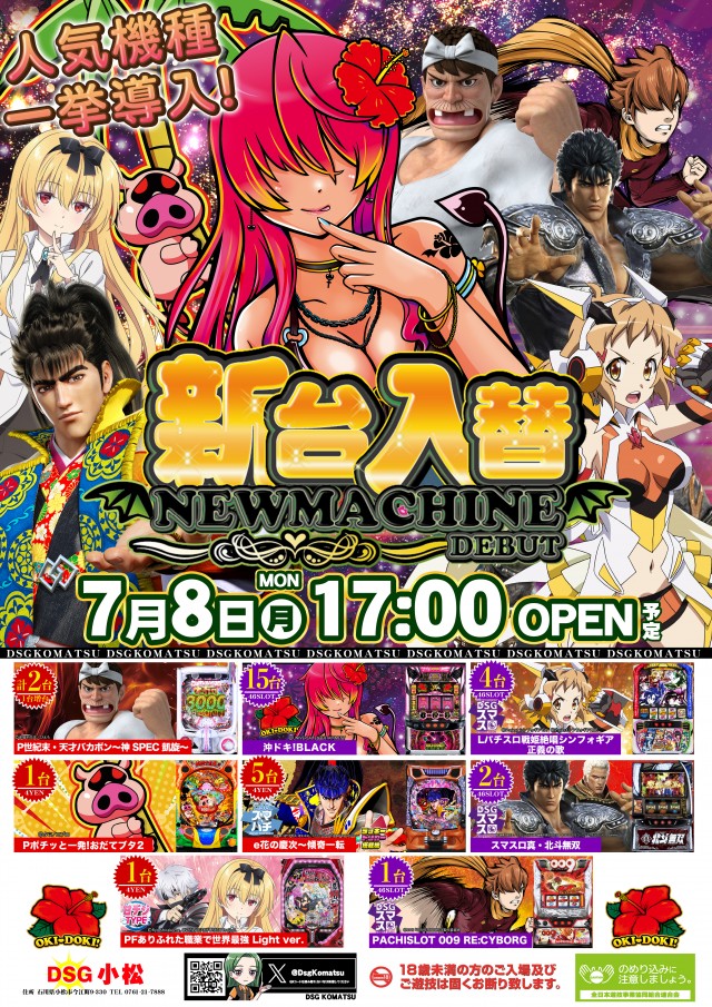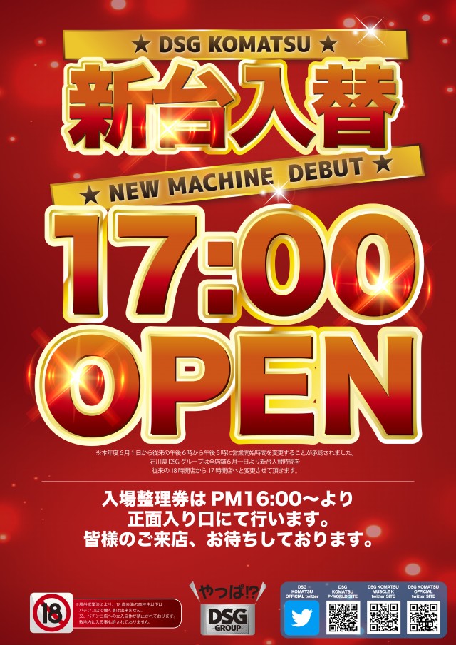 本日7月8日(月)新台入替17時開店!
