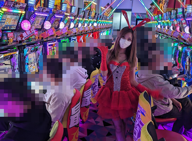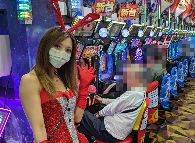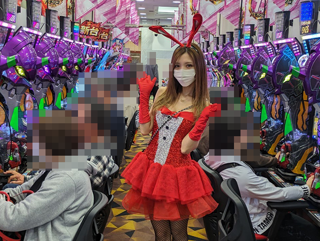 今回は、赤いバニーガール風のコスチュームで登場!!