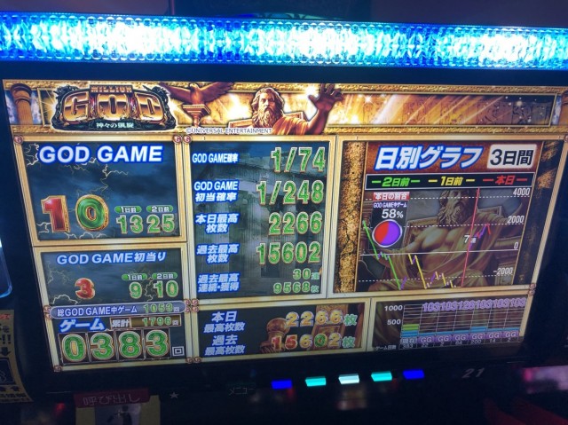 『ミリオンゴッド-神々の凱旋-』は逆に上げているような初当りの早い台も。