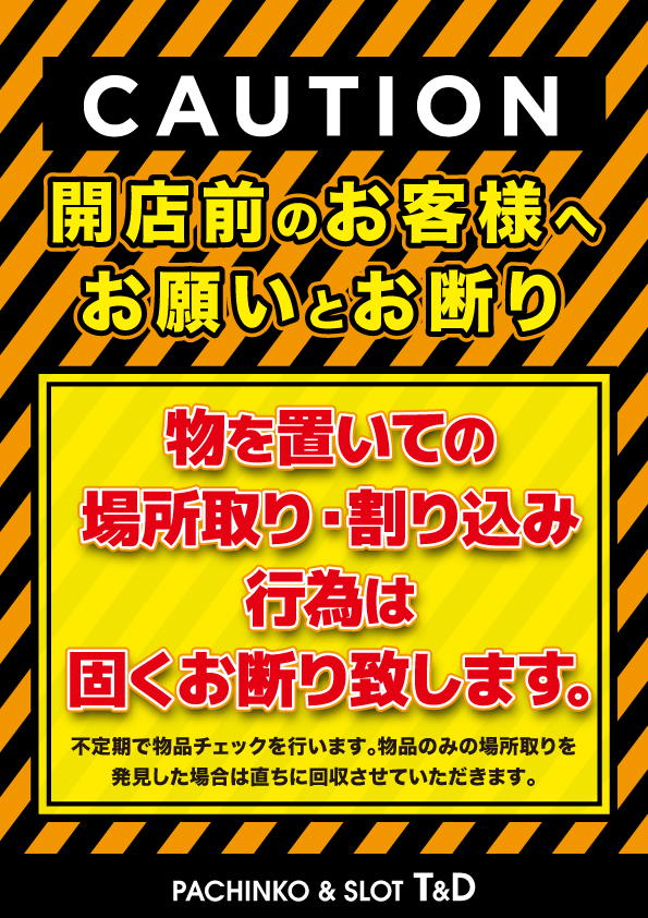 10時開店の場合:朝9時40分までに集合→抽選参加券配布→9時45分抽選開始 ※17時開店の場合:16時40分までに集合 |