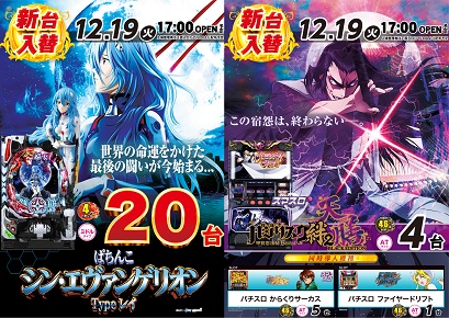 本日21日 新台入替 17時開店予定 最新eリゼロ等2機種