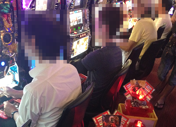 お昼を過ぎる頃の店内では、とくにパチスロの盛り上がりが印象に残っている。