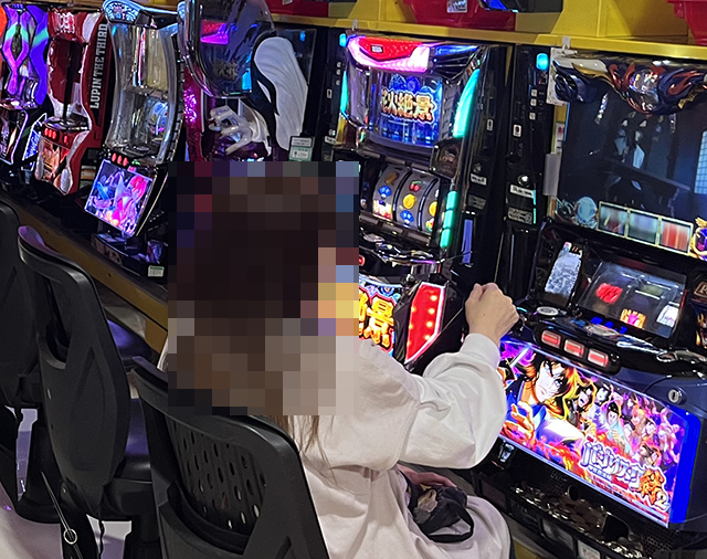 楽しそうに遊技をおこなっているプレイヤーを「SLOTバジリスク~甲賀忍法帖~絆2」でも目にした。