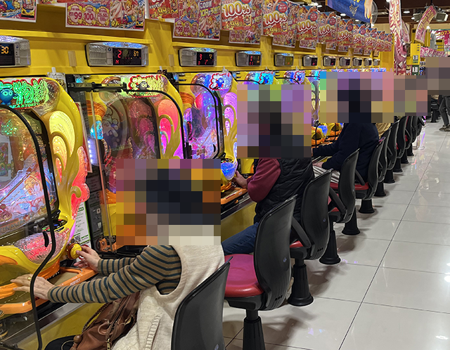 パチンコもパチスロも機種のラインナップが充実しており、取材時はさまざまな機種が楽しまれていた。