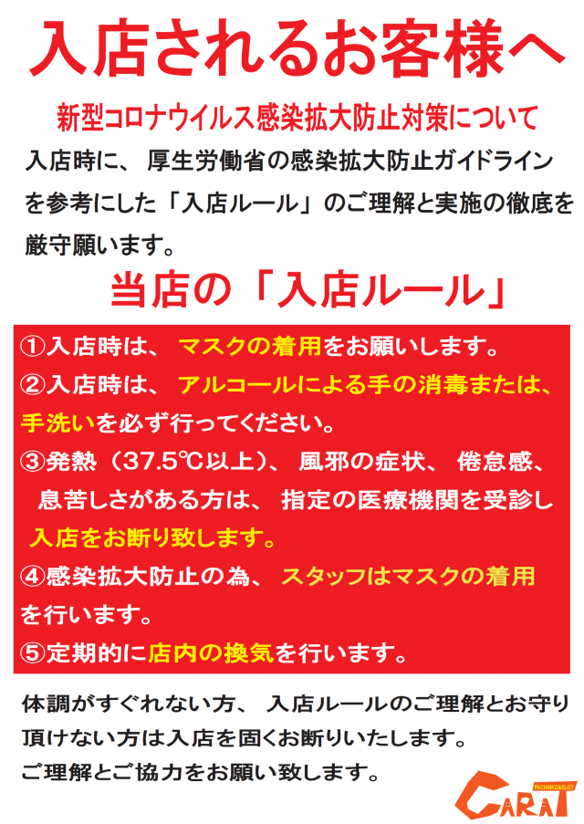 パチンコカラット鶴来店のお知らせ一覧