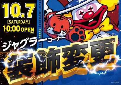 ジャグラーコーナー装飾変更 明日土曜10時開店予定