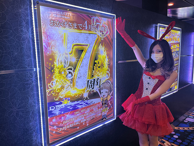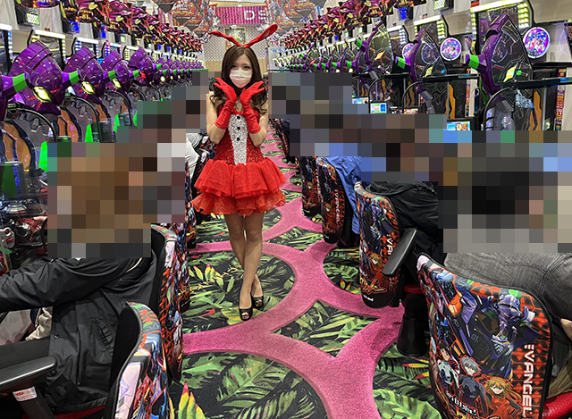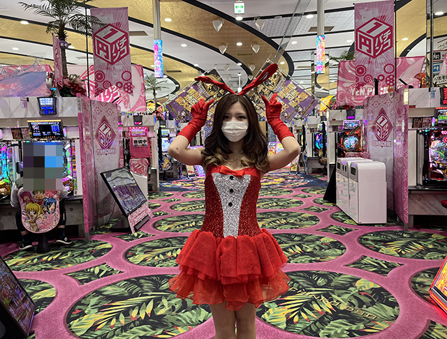 赤くてキュートなバニーガール風のコスチュームで登場。