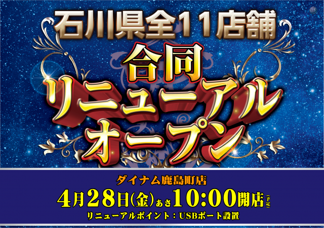 本日 石川県ダイナム11店舗合同リニューアルオープン