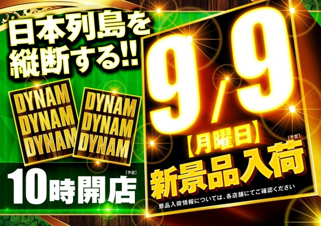 9/9(月) 石川県ダイナム全店 新景品入荷予定!