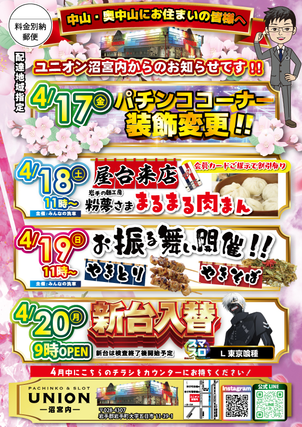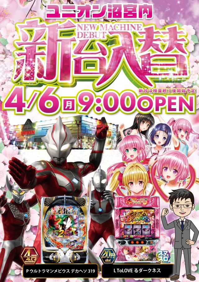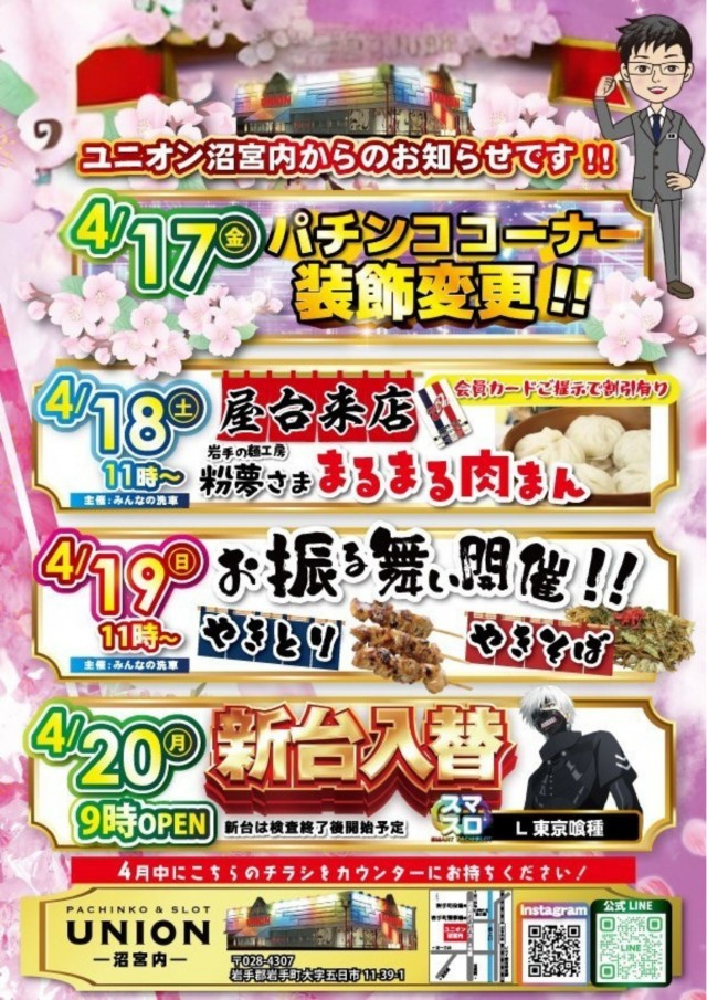 明日☆ユニオン沼宮内☆【新台入替】ご来店お待ちしております!