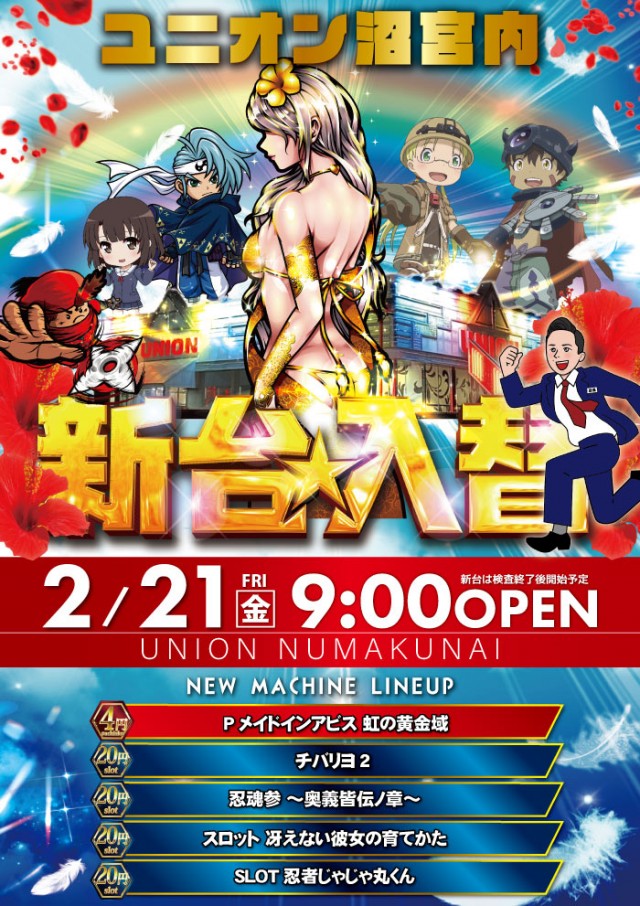 明日☆ユニオン沼宮内☆【新台入替】朝9オープン!!
