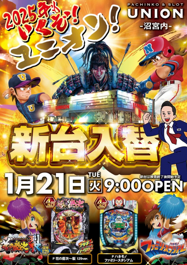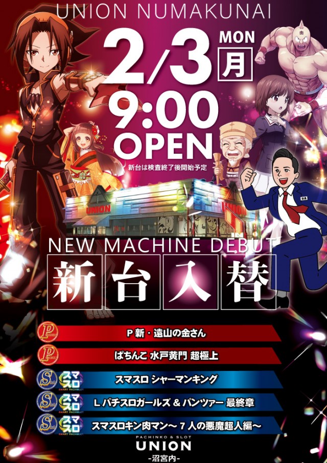 本日☆ユニオン沼宮内☆【新台入替】朝9オープン!!