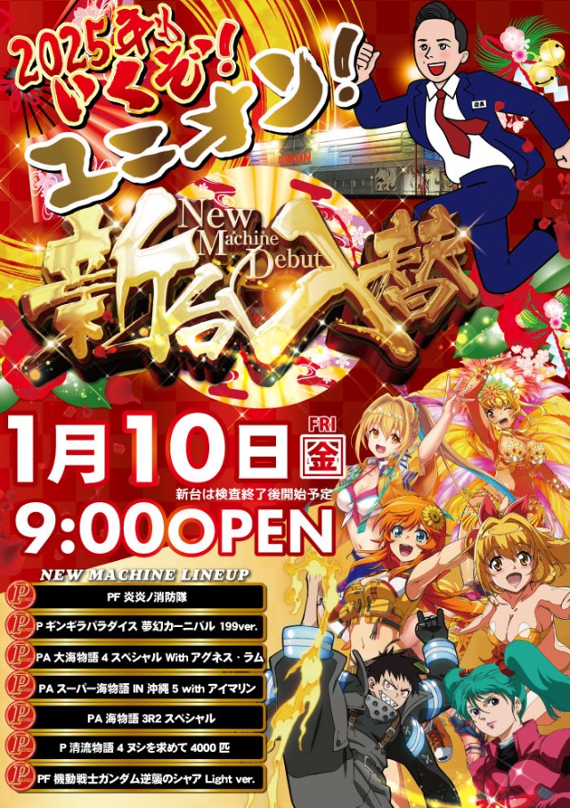 2025.1月10日!明日☆ユニオン沼宮内☆【新台入替】