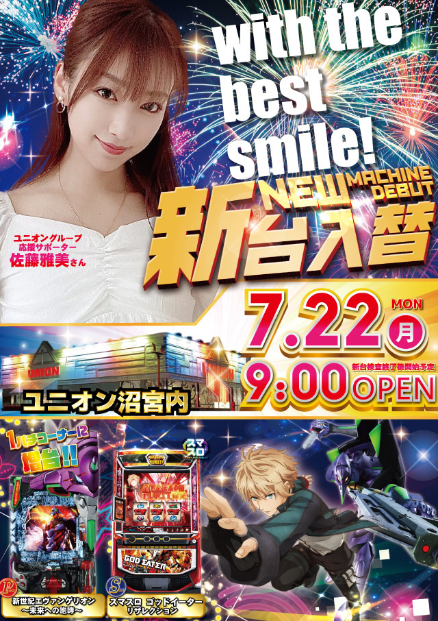 明日☆ユニオン沼宮内☆【新台入替】最新機種登場!!